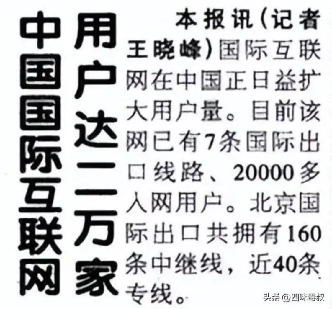同年11月13日,《北京日报》刊载《中国国际互联网用户达二万家》的消息,文中明确记载了:
