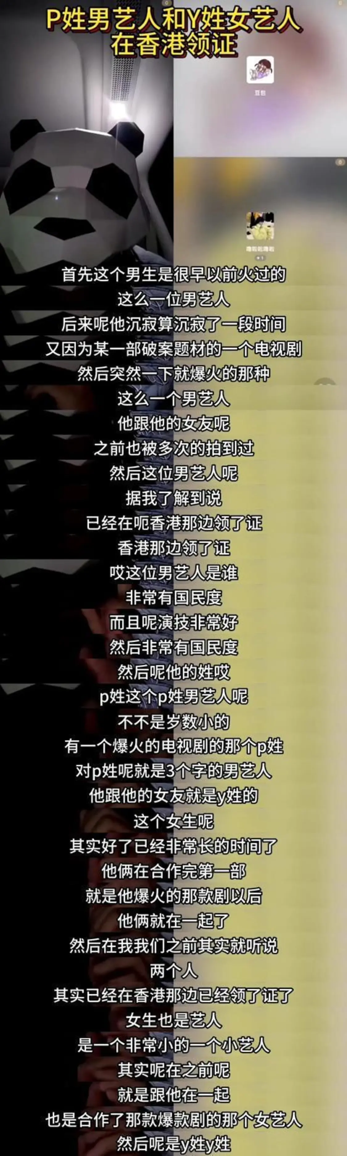 如今狗仔信誓旦旦爆料,称p姓和y姓演员结婚。