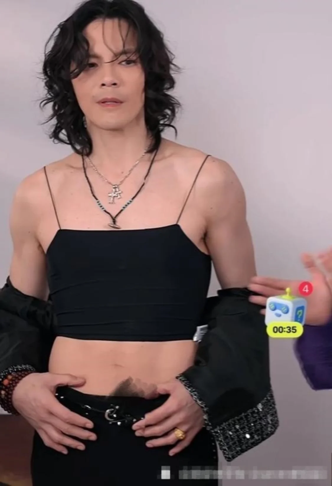 更加恐怖的是,向佐在换完那件卡其色大衣之后,紧接着穿上了一件黑色的吊带,网友们看完之后更是整个人麻了!看着向佐一身肌肉,穿着女士小吊带,站在镜头前凹着姿势,网友们完全想不懂向佐到底想干嘛,快来个人阻止他吧!