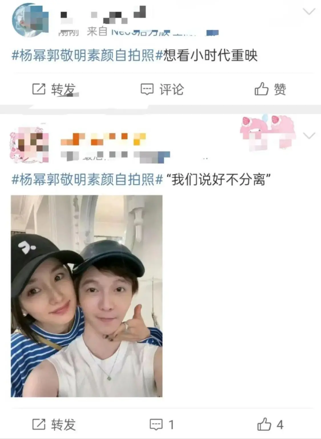 近日,一张杨幂与作家郭敬明的素颜合照引发了全网热议。