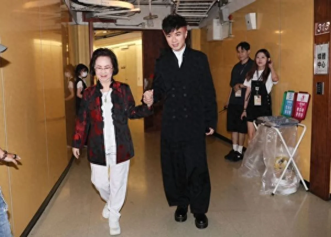 琼瑶当时穿着一身白,搭配红黑色外套,展现一如往常的高雅气质。演唱会开始前,被古巨基牵手走出场的她,满脸挂着笑容,状态绝佳,听到媒体称赞身体硬朗时,她还开心笑回:“哪里哪里!”