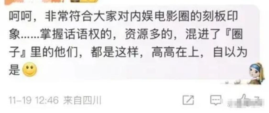 甚至有人将问题上升到整个电影圈的高度,说掌握了内娱电影圈的男性都是这样,高高在上,自以为是。