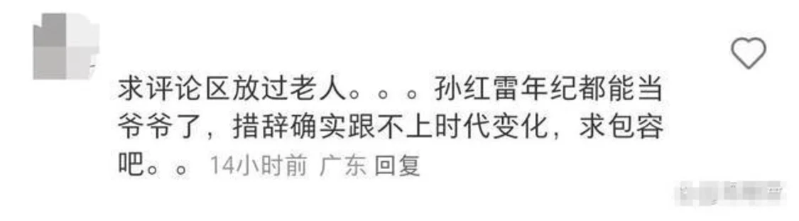 当然,也有网友解释,说孙红雷的年纪都能当爷爷了,措辞确实跟不上时代了,让大家包容一下。