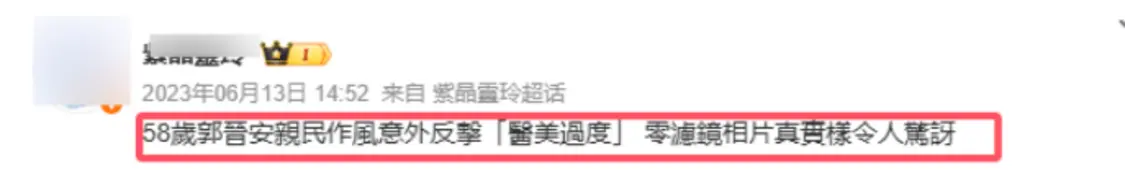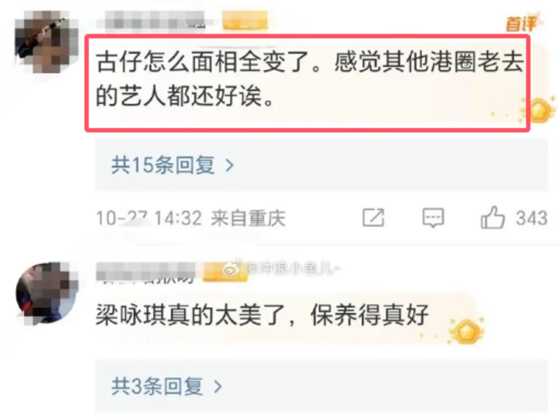 双眼皮也愈发不自然,已经影响了古仔的面相了,让他看上去“凶相”十足,不少网友留言:“古天乐的面相全变了。”