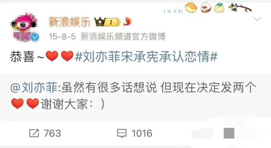 倾向于是 #刘亦菲电影 宣传期间的合约,有人发她回应的微博,那就再发几个,所谓的确认恋情后没几天就是她生日,当时有通稿说宋给她庆生,她立刻发了辟谣。