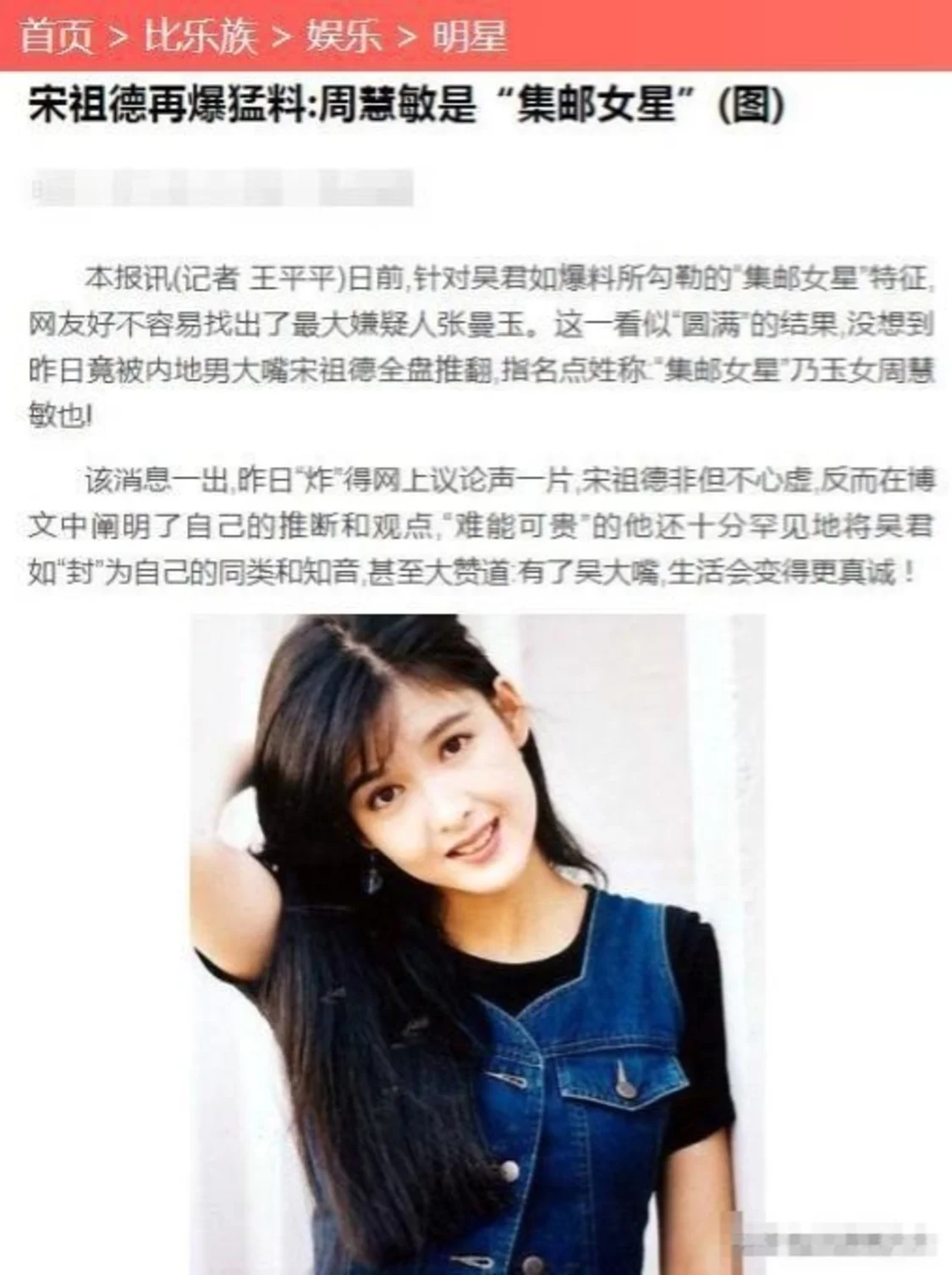那段时间,周慧敏基本上是避不开"集邮女"这个标签。