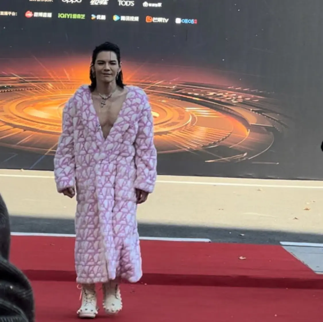 他还搭配了一粉色皮草外套,脚踩白色靴子,还大胆地秀出了胸肌。但是许多人觉得他的造型有些 “辣眼睛”,甚至有人直言他看起来像 “猛兽出没”,整体造型显得 “脏兮兮的”。
