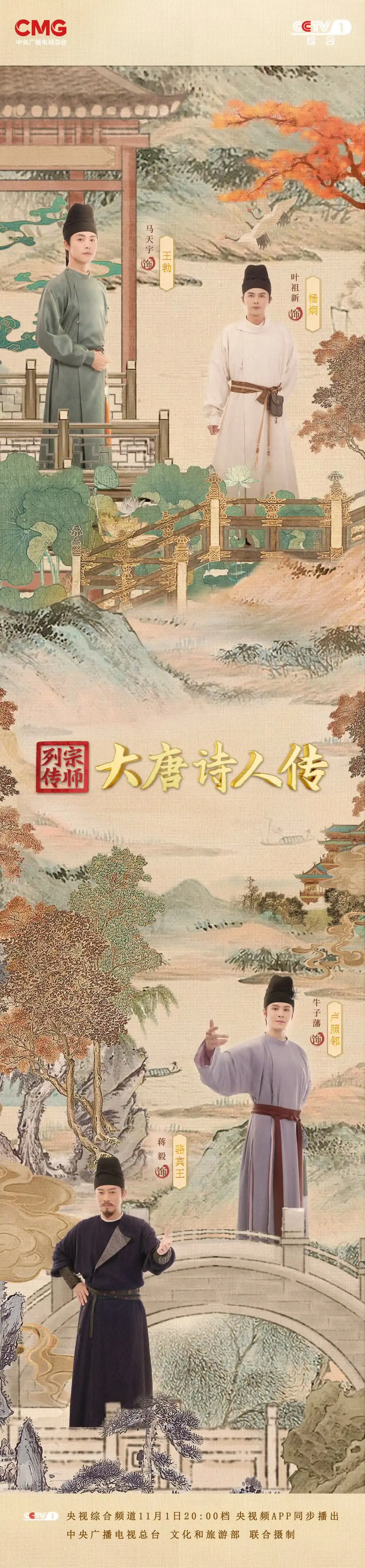 11月1日20:00档,锁定中央广播电视总台央视综合频道(CCTV-1),让我们踏入《宗师列传·大唐诗人传》的诗意之旅,走进“初唐四杰”波澜壮阔、跌宕起伏的人生。