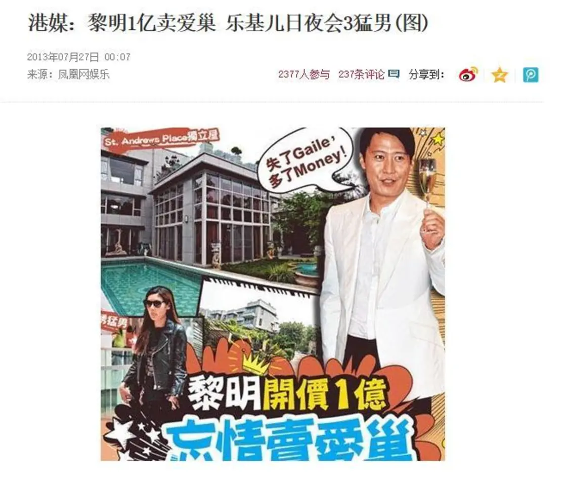 实际上在二人离婚后没多久,黎明就将先前居住的别墅给售卖了,看来是不愿意再回到这个伤心地了。