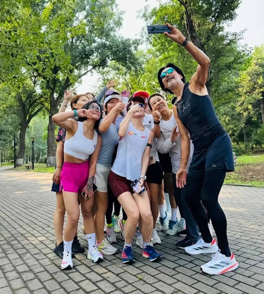 他甚至组建了一个明星跑步团,带领圈内好友一起运动健身。