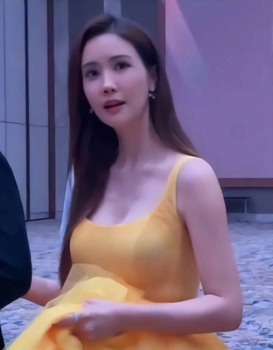 明艳的黄色礼服衬得她格外娇嫩,挽着丈夫崔东旭,精神焕发状态确实非常不错。