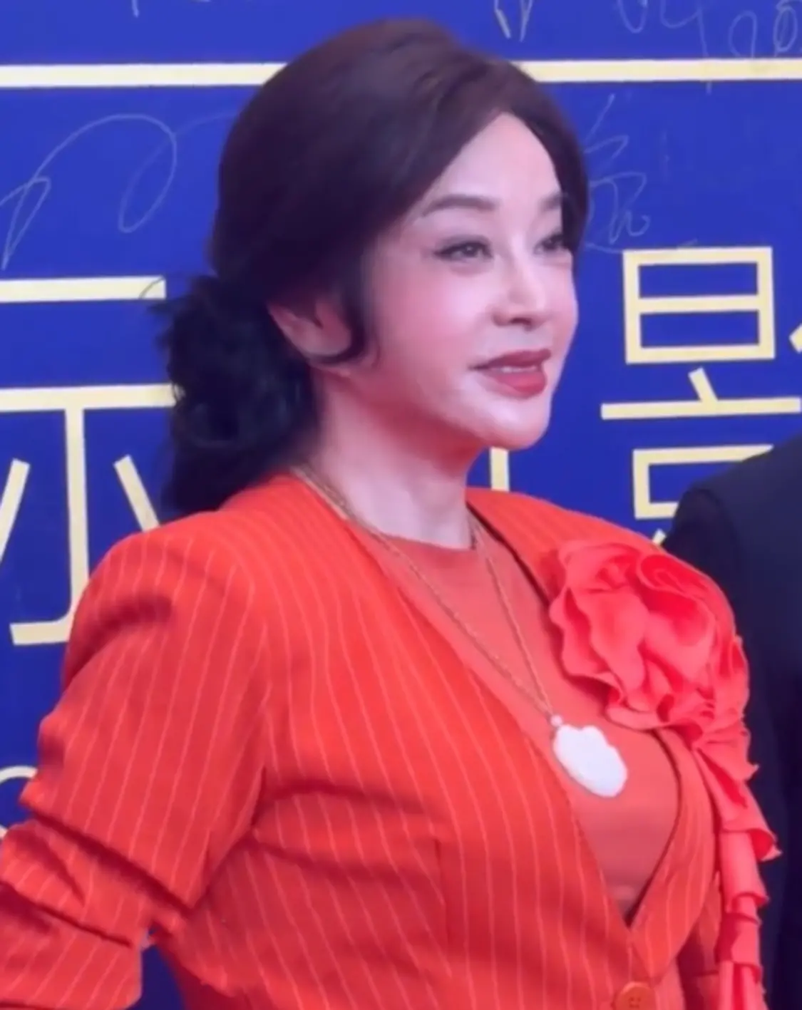 已经62岁的她依旧神采奕奕,没有穿华丽的礼服却美得落落大方,五官明艳皮肤状态也比较好。
