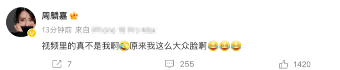 不过就在网友们热议之际,周麟嘉主动发声辟谣,否认自己是狗仔爆料的冯绍峰的新女友,还调侃自己长了一张大众脸。