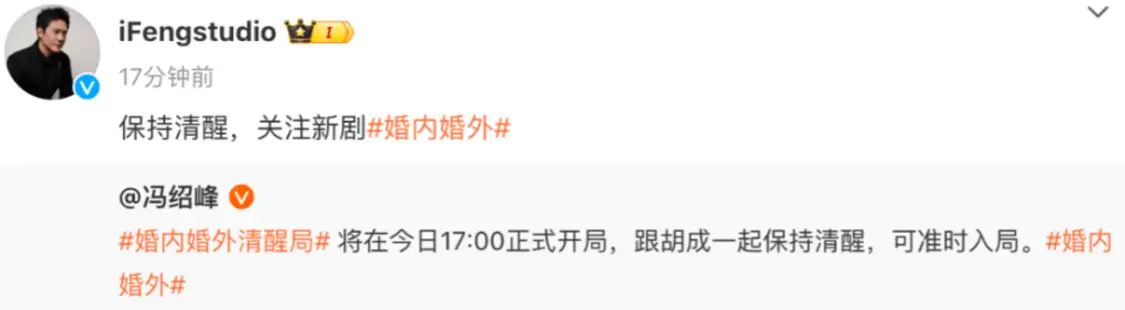 随后,冯绍峰工作室也发文,疑似对此事进行回应:保持清醒,关注新剧。