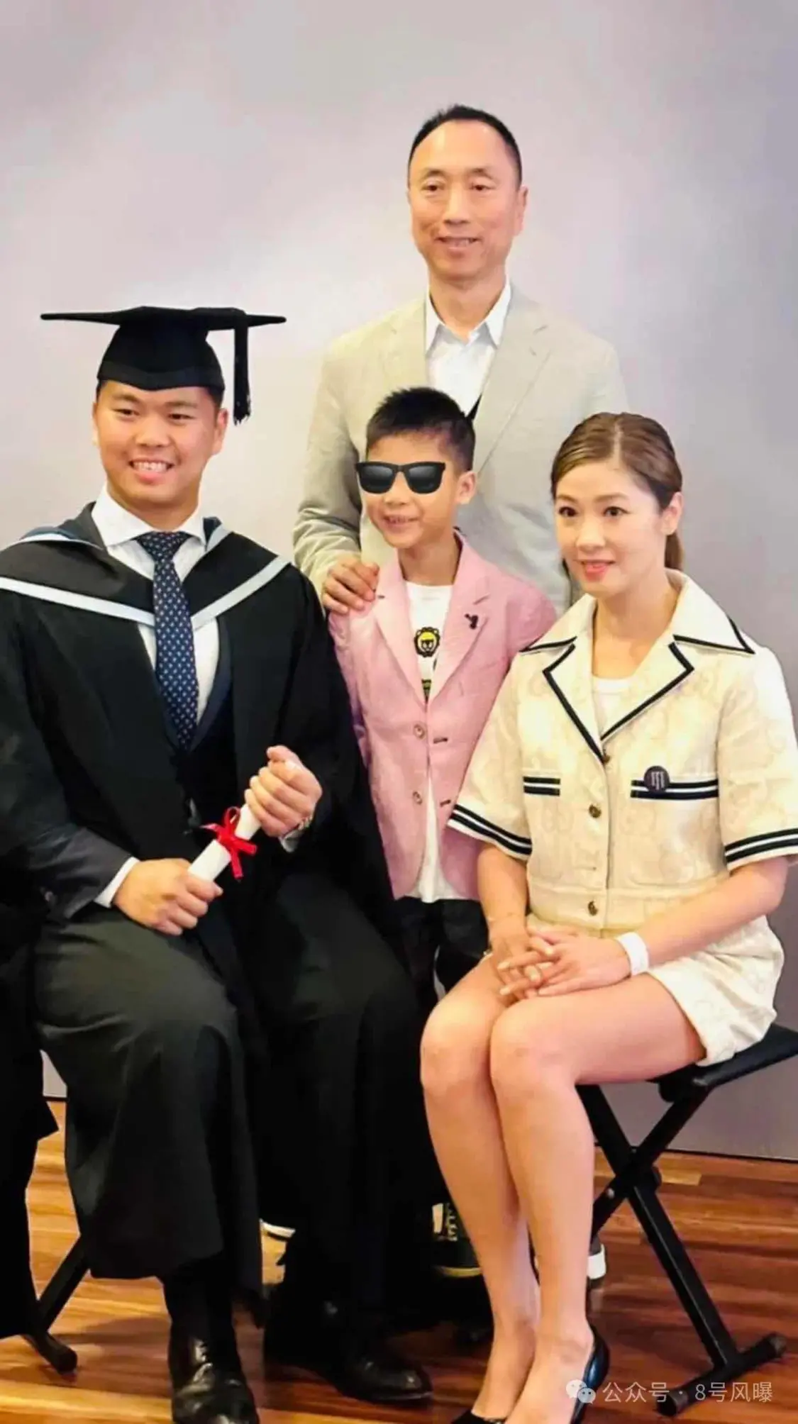 2018年,大儿子邬谟云选择在美国波士顿名校东北大学修读商科课程,毕业后再到伦敦名牌学府伦敦商学院修读管理及金融学科硕士课程,去年翁嘉穗一家更到英国出席Jason的毕业礼。