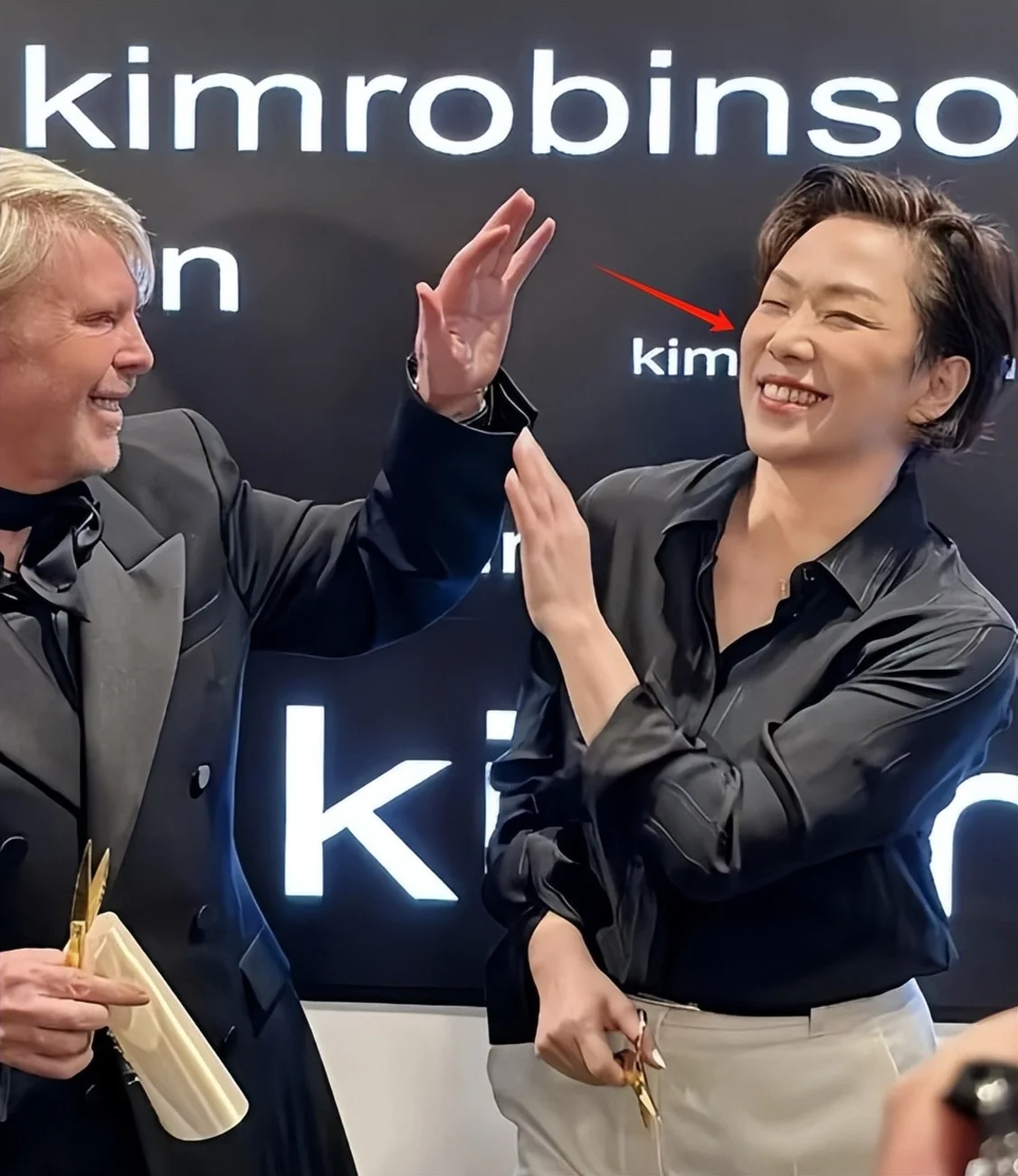 为了让自己看起来更加的年轻时尚点,她还特意配了一个短发的造型。