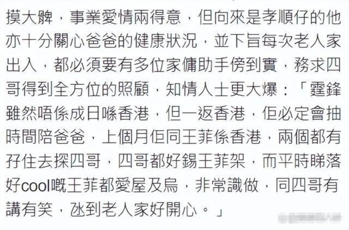 只不过,香港的父母始终是谢霆锋的牵挂,尤其是87岁的父亲谢贤。